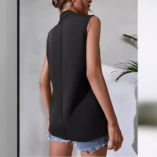 Women's Fashion Square Collar Pleated Button Sleeveless Vest
